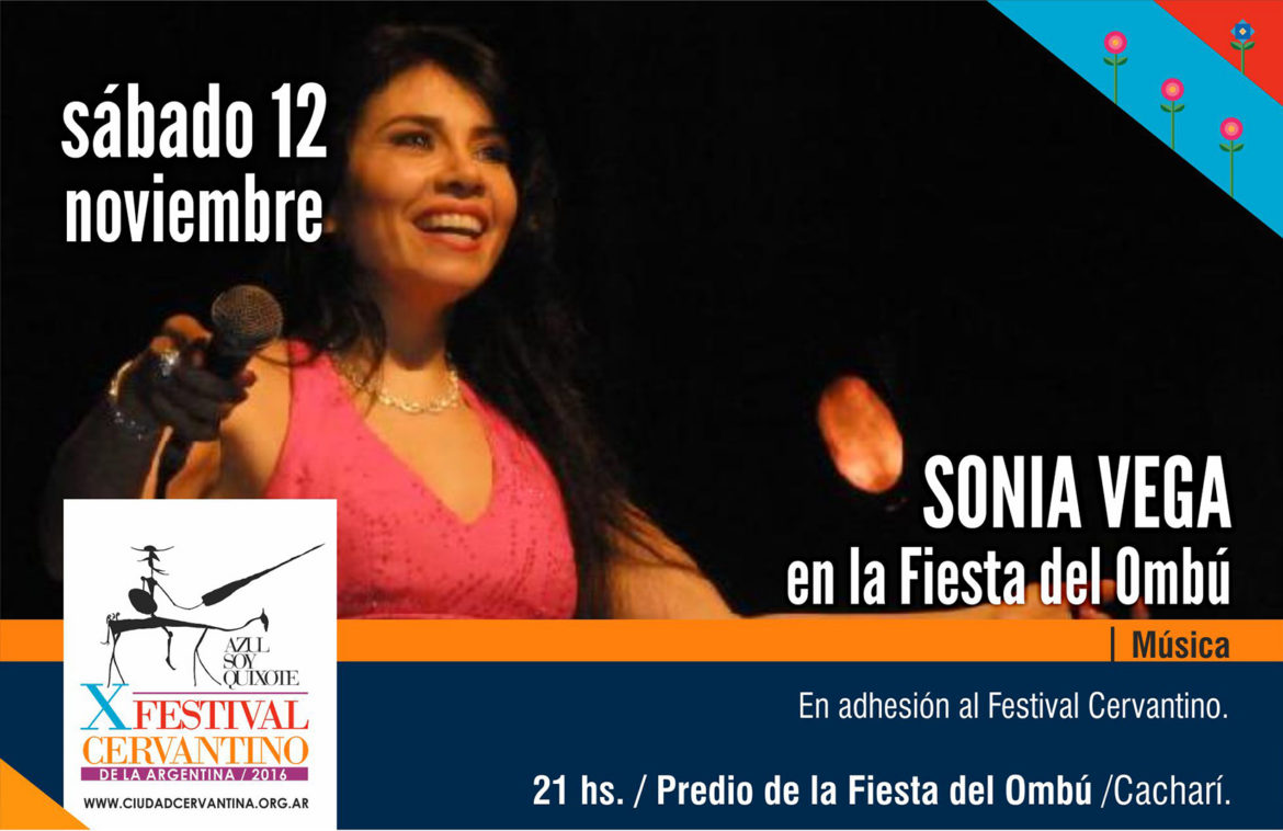X Festival Cervantino 2016 Sonia Vega en la Fiesta del Ombú Música Sábado 12 de Noviembre - 21:00 LUGAR: Predio Fiesta del Ombú Cacharí La cantante se presenta en la tradicional fiesta gaucha adhiriendo al X Festival Cervantino. Sonia Vega en la Fiesta del Ombú was last modified: noviembre 11th, 2016 by Pragmática 0 Facebook Twitter Google + Pinterest ― Festivales anteriores ―