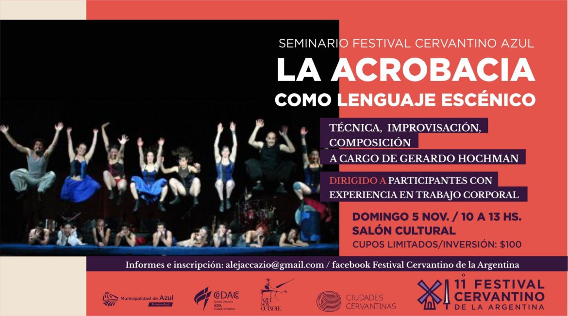XI Festival Cervantino 2017 TALLER DE ARTE CIRCENSE A CARGO DE GERARDO HOCHMAN Festival Domingo 5 de Noviembre - 09:00 - 13.00 LUGAR: Salón Cultural San Martín 425 (planta alta) INSCRIPCIÓN PREVIA $100 TALLER DE ARTE CIRCENSE A CARGO DE GERARDO HOCHMAN was last modified: junio 8th, 2018 by Pragmática 0 Facebook Twitter Google + Pinterest ― Festivales anteriores ―